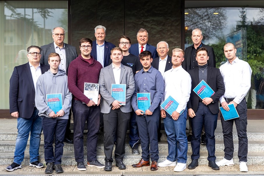 Die 8 besten Junggesellen erhielten für ihren Notendurchschnitt von 1,6 bis 1,9 eine besondere Auszeichnung. Mit auf dem Bild auch Präsident Matthias Graßmann von der Handwerkskammer für Oberfranken.